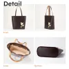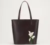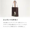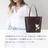 きめ細やかなブラックレザーに映える、手彫りのカラーの花が凛とした印象を与える。 シックな装いと合わせたいシンプルなトートバッグ。