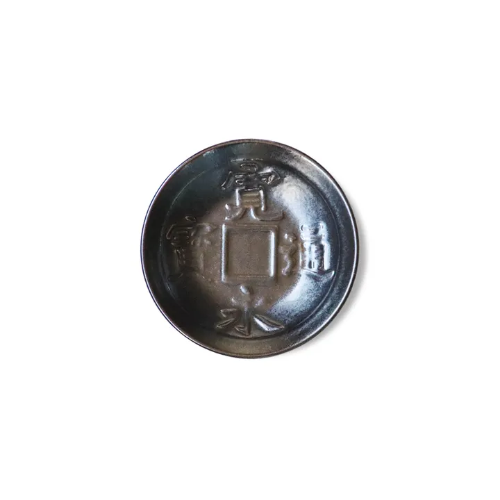 寛永通宝は江戸時代に長く広く流通していた銭貨。それが小皿になって令和の時代にタイムスリップ。 彫りの凹凸により立体感があるデザインになっています。表面の金彩、銀彩らが上品にお料理を引き立たせる小皿です。 金や銀の入った食器というと敬遠されがちですが、このお皿は落ち着きのある品の良い風合いで、一品料理がとても盛り映えします。