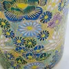 九谷焼の特徴は、「呉須(ごす)」とよばれる藍青色で線描きし、「五彩」とよばれる、赤・黄・緑・紫・紺青の5色での絵の具を厚く盛り上げて塗る彩法です。