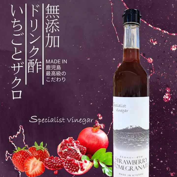 【2~7倍に薄める希釈タイプ!】 果実の華やかさと美容成分を一杯に。 “飲んで綺麗”を叶える、美容意識層向けビネガー。 鹿児島県の蔵元がいちごそのものを2年以上かけて醗酵させた、甘酸っぱく華やかな国産いちごと、ポリフェノール豊富な濃縮ザクロ果汁をブレンド。 内側からの美容サポートを意識した設計で、ビジュアル・機能性・味すべてにこだわったフレーバーです。 鮮やかなルビー色は店舗映え・ギフト映えにも優れ、サロン・美容系カフェ・フィットネス施設との親和性も抜群。 美容・健康の意識が高い顧客層へ、自信を持ってご提案いただけます。