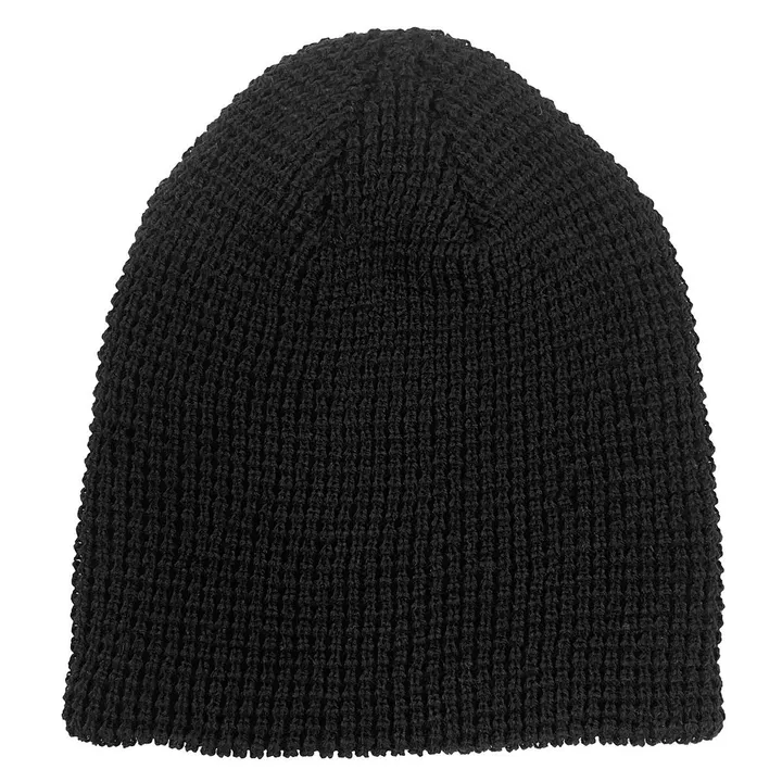 ワッフル編みで仕上げたシングルワッチ。他には無い優しい風合いの凹凸感。浅めでかぶり心地の良い軽い帽子。