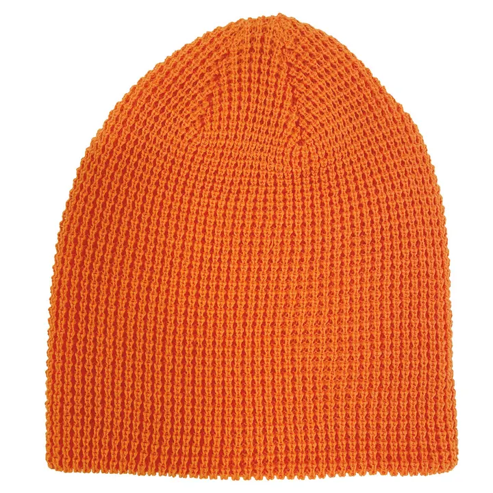 ワッフル編みで仕上げたシングルワッチ。他には無い優しい風合いの凹凸感。浅めでかぶり心地の良い軽い帽子。