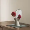 1台2役 ミラーときどきフラワーベース 取り外し可能な小さな台にお気に入りのアクセサリーやリップを置いて、お出かけ前の気分があがるメイク時間に。 台を外すと一輪挿しになり、傾斜のあるミラーが花全体を映すことで、空間をより華やかに見せてくれます。高品質な銀引きミラーを採用しており、花の色を自然に美しく見せます。 片手で持つことができる程よいサイズ感と軽さなので、お気に入りのスポットに持ち運べます。ガラスや陶器と違って、割れにくいプラスチック製。 TEXa特有のお米のもみ殻の粒が見える陶器のような質感と光の陰影が美しい多面体によって、オブジェのような佇まいで飾っておきたくなる実用的なミラーです。 お米のもみ殻を含むバイオプラスチックTEXaを使用し、 陶器のようなマットでやさしい質感を実現した環境に配慮したプロダクトです。 国内の自社工場で生産している日本製。 :: soemとは 大阪で100年続く業務用プラスチック製品メーカーが「愛着を持って長く大切に使っていただく」をコンセプトに展開するブランドです。 機能性と飾りたくなるような心に響くデザインに、長く大切に使っていただきたいという思いを込めています。