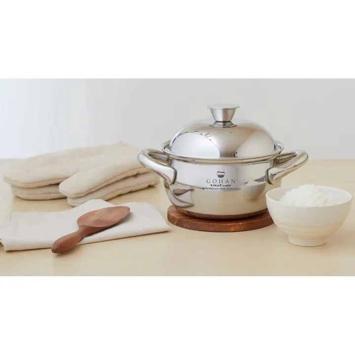 フタも本体も全面5層構造で、熱まわりが良く、鍋全体から熱が加わり、理想の対流を実現。またフタの重みで定圧が加わり、熱ムラがなく、少量のごはんでもおいしく炊き上げます。加熱10分+蒸らし10分の時短で炊飯でき、省エネにも。お鍋なので、丸洗いができ、お手入れもラクラクです。安心の10年間長期保証付き。
