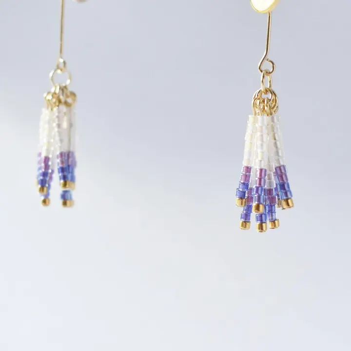 草藪に絡みつくように花を咲かせるヤブマメ 地上で開花結実しつつ 同時に地中でも花を咲かせ 果実をつくっているそうです 薄い紫桃色の蝶形花は 下向きにしっとりと咲きます material K14GF ゴールドフィルド(ピアス金具)、SILVER925 金メッキ(イヤリング金具)、ガラスビーズ、真鍮、チタン、シリコン *ゴールドビーズは本金メッキ加工を施したものを使用しております *取り付ける金具によって、使用している金属が異なります size 約10x50mm weight 約1.3-2.5g *取り付ける金具によって、重さが異なります *CACICOの商品は全て1点1点制作しているため、個体差があり、商品写真と差がある場合がございます。ご了承の上、ご購入ください。 *金属アレルギーの方はご使用をお控えください *受注生産のため、ご注文確定後1週間〜10日以内に商品を発送いたします