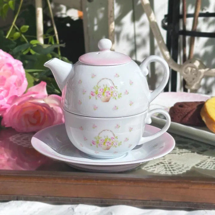 ティーフォーワン[ティーポット・カップ/花柄/カントリー雑貨/陶器/イマン/ローズバスケット]日本製