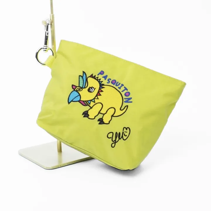 【商品説明】アーティストYUのパスキートンフレンズの刺繍がとてもキュートです。 ▲お取り扱いの注意 本製品は濃色、刺繍糸の色落ちすることがあります。 洗濯は単独で洗って下さい。 【サイズ詳細】 高さ:16cm 横幅:25cm まち:9cm 【素材】 本体:ポリエステル 【中国製】 キュートなPASQUITONポーチは、お子様から大人まで愛される可愛いキャラクターが目を引くポーチです。洗濯することができるので、気軽にお手入れができます。ファッションアイテムとしてだけでなく、サイドにクリップがついていますのでパンツのベルト通しにつけたり、他のbagにつけたり、機能性も備えています。 pasquitonの商品は、厳しい品質管理のもと、一つ一つ手作業で作られ、生産者も楽しみながら製作ししております。 あなたにも、この可愛らしいポーチで遊びやレジャーを楽しんでほしい。ぜひ、お手元にお迎えください。 可愛いPASQUITON商品は、目がキラキラ輝くエモーショナルなデザインで、持っているだけで自分も、周りの人たちもハッピーにさせてくれますよ。