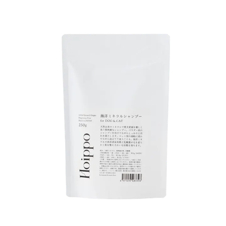 被毛の弱い愛犬にもおすすめ、低刺激なHoippoのシャンプー。 自然由来の海洋ミネラルで優しく泡立てながら、しっかり汚れとにおいを落とします。 パウダー状なので、桶に入れて足湯や湯船に浸かることも。 本製品に含まれる乳酸菌は、赤ちゃん由来。1gに4兆個含まれ入りで、皮膚を守り被毛をふわふわに保ちます。 なんと裏技としてペット用のシャンプーに限らず、飼い主さまご自身の入浴剤としてもお使いいただけます。 使用例 1. 泡立てネットで泡立てて、ペット用のシャンプーとして 2. ペット用の入浴剤として 3. 猫の顎ニキビに 成分:海洋ミネラル、植物抽出物、乳酸菌 ご使用量目安 猫・小型犬:20L~40L・約5g(50回分) 中型犬:50L~70L・約10g(25回分) 大型犬:80L~100L・約15g(17回分)