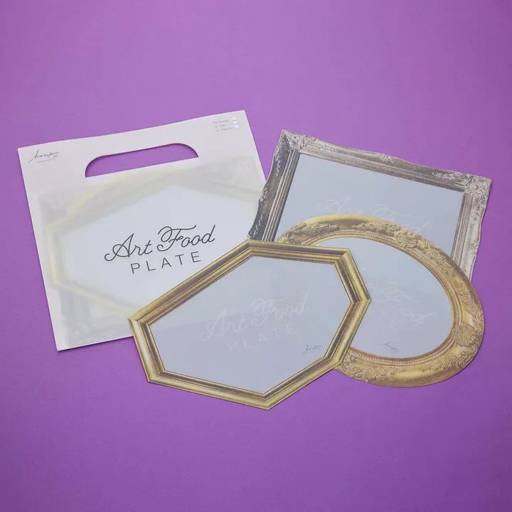 誰でも一瞬で華やかな食卓に。ART FOOD PLATE(アート フード プレート) *オーバル 1枚入り 敷くだけであっという間に華やかになる、額縁をモチーフにしたアートフードプレートを使えば、何を載せてもオシャレなワンランク上のテーブルコーディネートができます。 フルーツやサンドイッチを載せただけでも、普段のおうちごはんでも、このプレートに食材を載せるだけでフレームの効果によりいつものお料理を特別な日の演出に早変わりさせることが出来ます。 喜ぶ声とともに思わず写真を撮りたくなる!誰でもどこでもアートな見栄えを演出できるアイテムです。 繰り返し洗って使える素材なので日常にも喜ばれるうえに、薄く持ち運びしやすいのでアウトドアシーンなどでも便利です。 サイズ:365mm×278mmに収まるサイズ 素材:ポリプロピレン 耐熱温度:60℃ 厚さ:0.75mm 仕様:食品対応  プレートの上に直接お料理を乗せることができます ◇取り扱い上の注意点◇ ・火のそばに置かない ・熱い鍋等を載せない ・電子レンジ・オーブン・食洗器使用不可 ・使用後はやさしく洗って乾いた布等で完全に水気をふきとる ・たわしや磨き粉、漂白剤不可