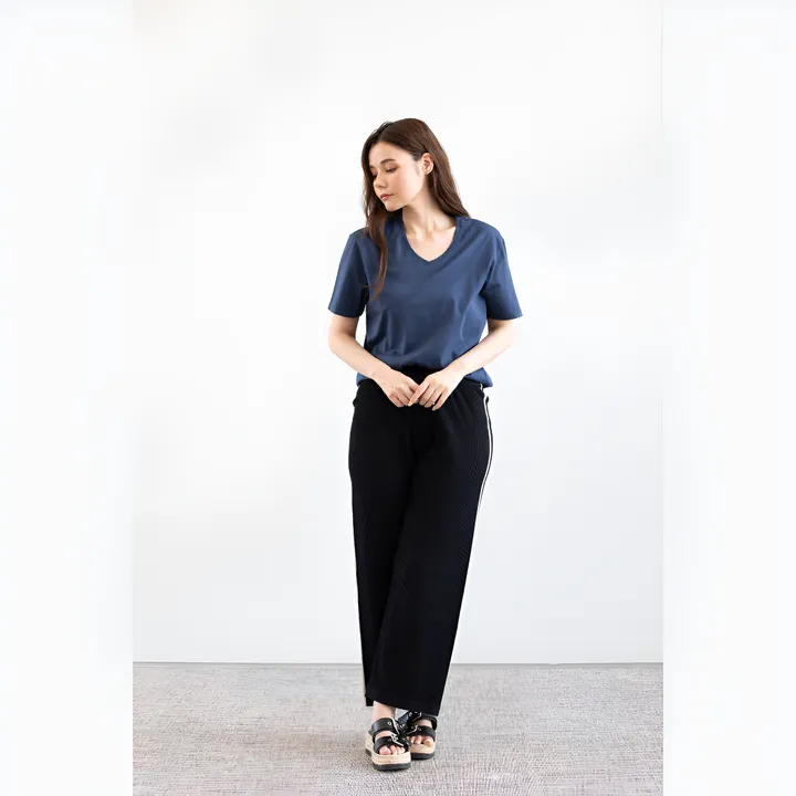 お家で過ごす時間も、ちょっとしたお出かけにも、ゆったりリラックス気分になれるニットパンツを履いてみたい。 マイテのニットパンツは、動きやすく大人なシルエットで、外にも臆せず履いて行ける優れもの。 肌触りのいい超長綿のピマコットンとロイヤルアルパカのブレンド素材で、ストレスフリーに履けます。 動きやすくて快適な大人のニットパンツ。 ゆったりとしたシルエットながら、しっとりシルキーな手触りが特徴のペルー産ピマコットンに、少しだけアルパカの最上級「ロイヤルアルパカ」を ブレンドした生地は、きれいめな表面感と程よく落ち感があり、カジュアルになり過ぎない印象に。 両サイドにさりげなく細いラインが入っています。 ワンマイルウェアにとどまらず、ワンランク上のおしゃれを楽しめます。 おうち時間にもお出かけにも。
