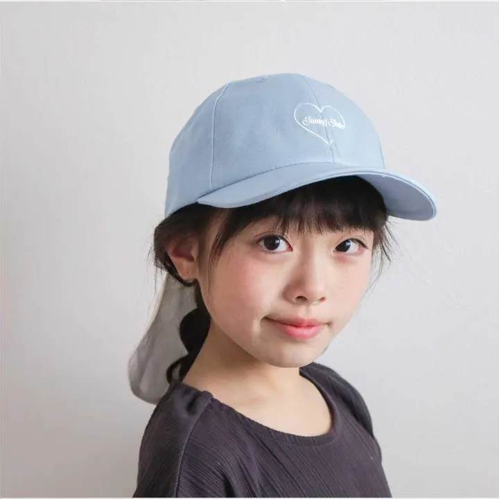 キッズ キャップ 女の子 帽子 サンシールド付き キャンディーカラー 選べる2タイプ 刺繍有 刺繍なし SNK003 刺繍有×ブルー