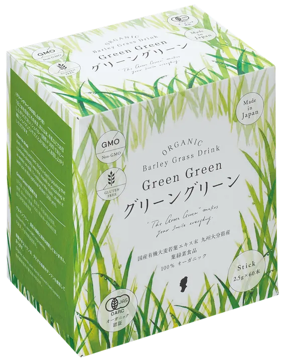 国産有機の大麦若葉を粉末化した、100%オーガニックの葉緑素ドリンク グリーングリーンは収穫されたばかりの新鮮な大麦若葉をギュッと搾って青汁にした後、熱を加えず粉末化する、青汁の長期保存を可能とした「活性保存製法」で作られています。 大麦若葉「赤神力」の健康パワーを最大限に引き出した、こだわりの製法です。 青汁が私たちにもたらす効果って? 健康的な生活を送るための基本は毎日の食事にあります。 1日350g以上の野菜(健康日本21における1日の目標摂取量)を摂取することが理想とされていますが、それだけの野菜を毎日食べ続けるとなると大変です。 最近では野菜そのものの栄養価も低下傾向にあり、十分に食べているつもりでも野菜不足になりがちなのも事実です。 そういった野菜不足は健康面で様々なトラブルを引き起こす一因となります。 大麦若葉に限らず多くの緑葉野菜の栄養素を摂取するのには青汁がよいと言われています。 青汁とは「生の緑葉野菜を搾った汁」のこと。 新鮮な緑葉野菜をギュッと搾った汁を飲むことで毎日の健康に必要な栄養をサポートできます。