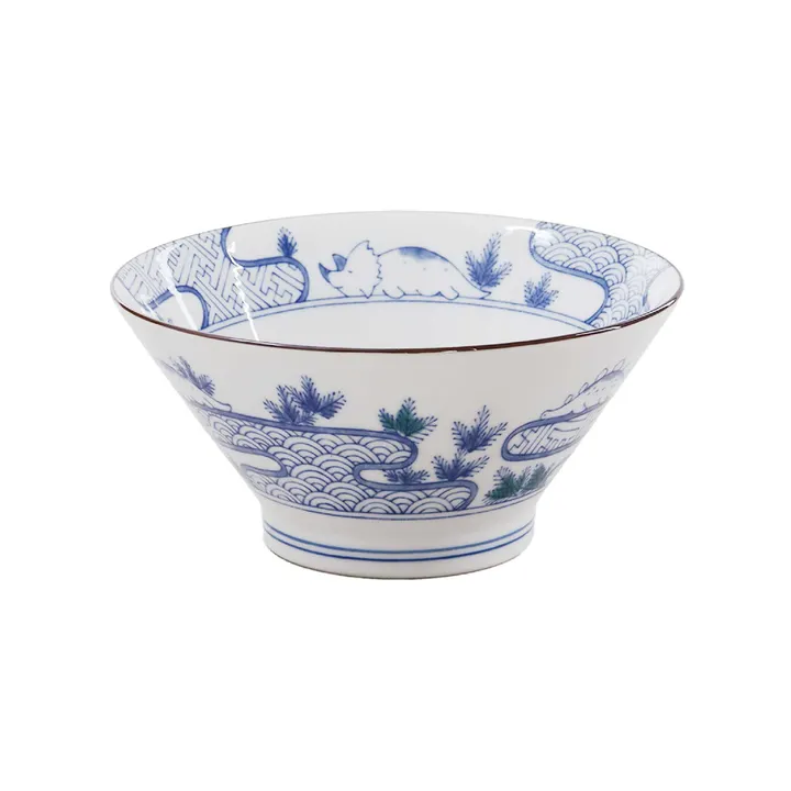 日本の伝統的な文様と地に眠った恐竜たちのコラボレーション!当社が商売を営む岐阜県瑞浪市は、美濃焼の産地として栄えていますが、一方で化石が採れる街としても有名です。 古き良き魅力的な文様のなかに、恐竜がひっそりと潜むユニークなデザインは、きっと新しい物語を紡ぐでしょう。 大人から子供まで幅広い世代に愛される一皿に。 デザインに描かれている松や梅は、生命や希望の象徴として昔から縁起物として愛されてきました。 恐竜とともに良縁を結ぶお役立てになれば幸いです。 現代的なスタイリッシュな形が格好良く、手にも持ちやすい丼ぶりです。 ラーメンなどの麺類や、丼もの料理にもいつも使いたくなる一品です。