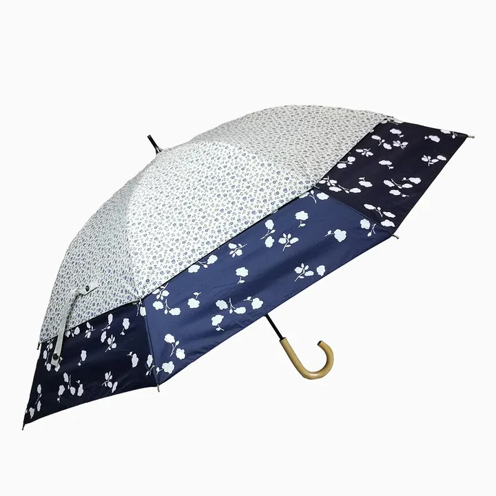 日本政府 推奨商品 親骨45→60cm 裾が広がるトランスフォーム傘 花柄 UVカット&完全遮光 遮熱 27025 オフホワイト×ネイビー