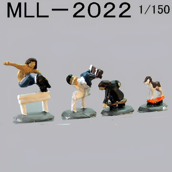 マイクロライフ Nスケール・ストラクチャーシリーズ(1/144~1/150)ピューター(金属)製フィギュア ー完全手塗り仕上げー 【MLL-2022】ストリートスケボー2