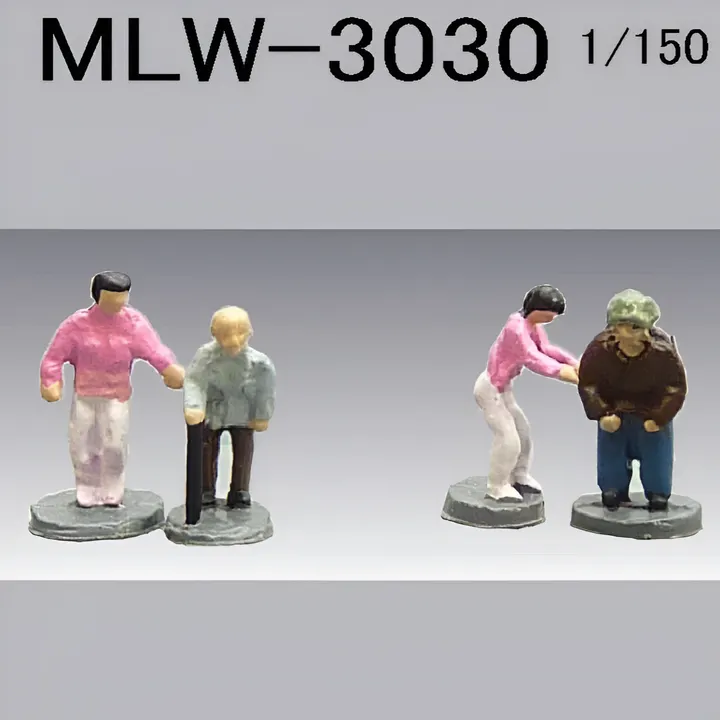 マイクロライフ Nスケール・ストラクチャーシリーズ(1/144~1/150)ピューター(金属)製フィギュア ー完全手塗り仕上げー 【MLW-3030】介護士2ゆっくりお散歩