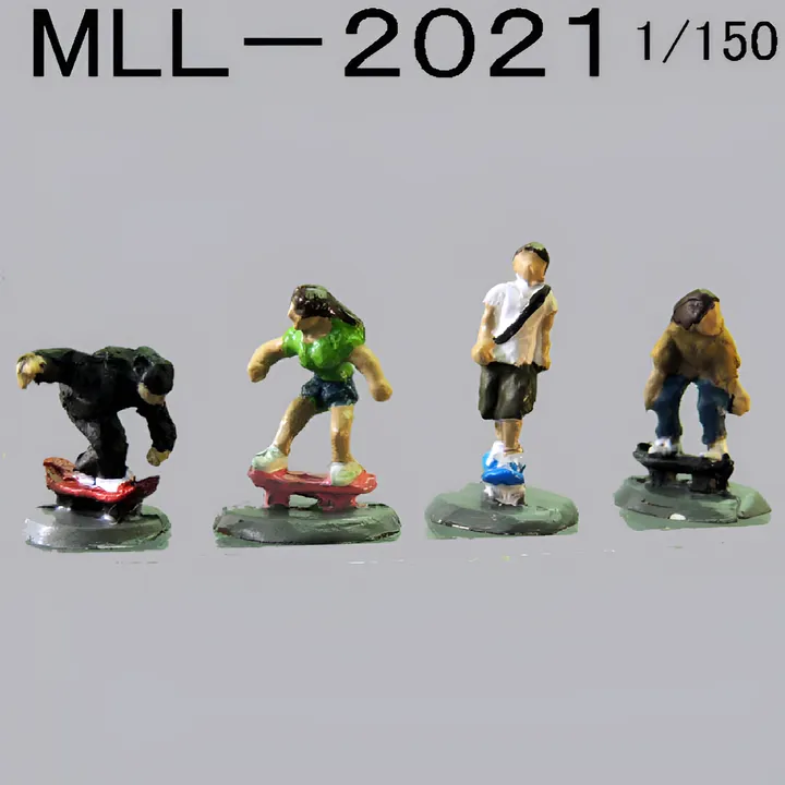 マイクロライフ Nスケール・ストラクチャーシリーズ(1/144~1/150)ピューター(金属)製フィギュア ー完全手塗り仕上げー 【MLL-2021】ストリートスケボー1