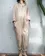 風をはらむほどの体が泳ぐフォルム。 あまった袖の長さやパンツ丈。 アンバランスからの抜け感が成立する服。 -DESIGN- ・第一釦は胸のあたりから始まり、ざっくり開いたVラインがデコルテを生かす。 シルエットはボーイッシュな印象ながらも、計算されたディテールがほのかにセンシュアリティを感じさせる女性だけのマスキュリンスタイル。 ・トップス部分の縦に長いポケットも全体のバランスを良く見せ、縦ラインを強調。 ・ウエストの余りが気になる方は、切り替えベルトの内側でドローストリングで、すっきりさせてください。 更にぎゅっと絞れば、ブラウジングなスタイルに。スタイリッシュな着こなしが完成します。 -TECHNIQUE- ・身長が155cmな小柄な方も、ブラウジングをすることで、着こなすことができます。その際は、袖、裾をロールアップしスッキリみせることをお忘れなく。手首足首を見せることは女性らしさを際立たせる、着こなしテクニックのポイントです。(ブラウジングすることで、気になるお腹やお尻のカバーにもなります。) トップス部分を腰に巻いたデザイン性のある着こなしも楽しめます。 -MATERIAL- 忙しい女性のため、形態安定加工済みの生地を使用。 *フィールドテストの結果、シワは付きますが蒸気で取れやすいというのが特徴です。 お家で過ごす時間、もちろんそのまま街着としても楽しめる、そんな日常をボーダーレスに楽しむオールインワン。ニュースタンダードなアイテムとしてご提供します。