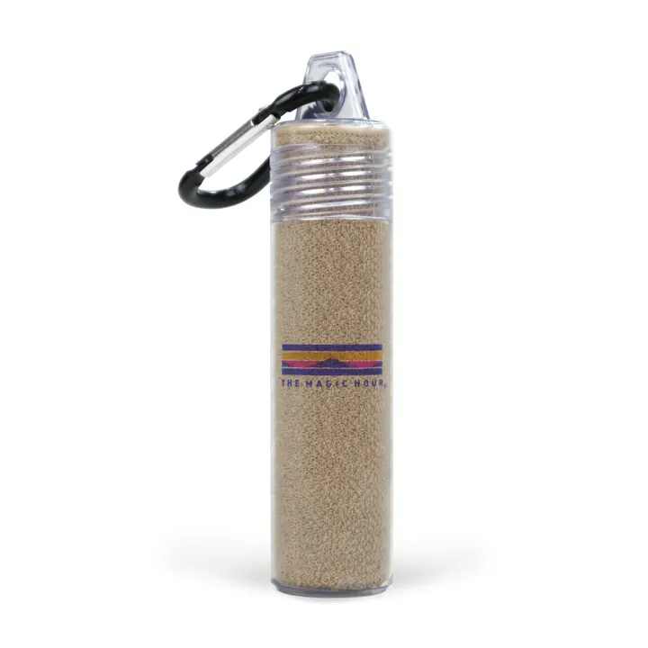 制菌防臭機能を備えたおしぼりタオルです。 繊維に付着させたプラチナの効果により、 水ですすぐだけで繰り返し清潔な状態で使用できるので、 キャンプや災害時の洗濯ができない時にも最適です。 高い保水性と速乾性の二面性があり、 ウェットでもドライでも使用可能です。 付属ケースはカラビナ付です。 Dリングや服にかけて持ち歩くことができます。 - プラチナ加工 繊維に付着させたプラチナの効果により、雑菌の繁殖が抑制されることで ウェットな状態でも一日中効果が持続し、清潔にご使用いただけます。 濡れた状態のイヤなにおい、放置臭の発生を防ぐため、快適にご使用になれます。