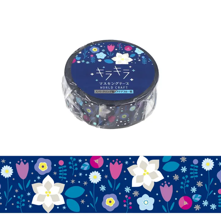 【 キラキラマスキングテープ 15mm Winter】 ★★ 箔を使用した、キラキラが可愛いキラキラマスキングテープ 〜 第7弾 Seasons,Holiday,Cafeの3つをテーマに <12柄> を揃えました ★★ スパークリング箔とアクアブルー箔がのった冬モチーフのキラキラマステです。 箔が雪のようにキラキラ輝き、冬以外にも年中使える定番の花柄が嬉しいポイントです♪ 『スパークリング箔とアイスミント箔』 を使用しています♪