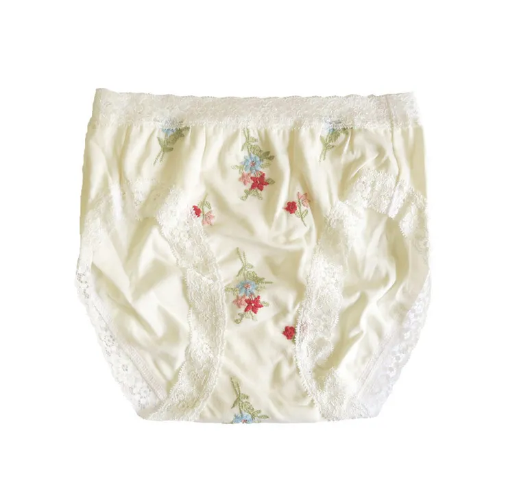 縦横よく伸びる生地にブーケ柄の刺繍をしました。刺繡の立体感をだす為に綿の糸を使い、気持ちが上がるように多色を使い、豪華でさりげない可愛らしいブーケが出来ました。 ゆったりとした履き心地になるよう、後ろ身頃は無地になります。 サイズM(ヒップ87-95※目安です) 別売りでお揃いのノンワイヤーブラがございます。