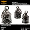 アメリカ製ガーディアンベル社製ガーディアンベルです。 MADE IN USA アメリカ製 交通安全 魔除け 御守り ガーディアンベル アメリカのライダーの間には、事故や、転倒の原因は「道路にひそむ悪魔」によるいたずらだという伝説があります。悪魔は走る者に悪戯やトラブルを運んできます。このベルは美しい音色で悪魔たちを追い払うと言われ愛されています。そんな悪魔のいたずらを防ぎ、御守りとなるのが、守護者のベルという意味を持つガーディアンベル。 日本でも鈴の音(ね)は神道では魔除けの音と言われています。ピューター製の鈴でいい音色でガーディアンベルはデザインも様々あります。 またガーディアンベルにまつわる伝説として、プレゼントとして送られたベルの効果は、自分で手に入れたものの2倍になると言われています。 それゆえに彼氏・彼女・友達・家族へのプレゼントとしての人気も非常に高まっています。 シルバーアクセサリーのようにおしゃれに装着できて素敵な音色を奏でるガーディアンベル。 バイカー以外にも自転車や旅・交通安全のお守りとしてお使いいただけます。 カバン・ランドセル・キーホルダー・ペットの首輪等に付けてお使いください!! ※タイラップ等でバイクのフレームにも簡単に取り付けできます。 アメリカンモデルだけではなく、旧車ファン、レプリカライダーまで、さらにバイクだけでなく、自転車や車にもピッタリな御守りとなっています。 アクセサリーとしても人気で、アイディア次第で車体だけでなく、キーホルダーや鞄など、どこにでも付けておしゃれに楽しめます。