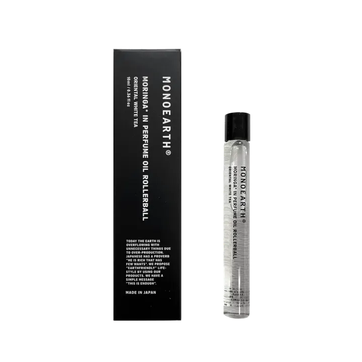 ■ 製品説明 -DESCRIPTION- ブラジル産有機さとうきびから生成されたスクワランをベースに、豊富な栄養素を含有する「奇跡の木」モリンガの実より抽出されたピュアオイルを抗菌・エモリエント効果・テクスチャー改善・被膜形成用途で配合しました。天然成分のみで処方されたスキンケア仕様のパフュームオイルです。 爪やあまかわのケア、またエタノールフリーですので、寝香水にもお薦めです。 持ち運びに便利なバッグインサイズです。 ■ ご使用法 -DIRECTION- ロール部分を首や手首、耳の後ろ、爪、あまかわ等にあて適量を塗布してください。 オイルの出が悪い場合は、ローラー部分を反時計まわりにひねり緩めてください。 工場出荷時は、持ち運びの際に浸透圧の高いオイルが染み出さないよう、きつめの設定になっています。 キャップを閉めるとまたきつめの設定に戻ります。 STORY 【スクワラン】 スクワランオイルの原料となるスクアレンは深海鮫の肝油から発見されました。ヒトの皮脂の13%を構成する成分であり一般に25歳くらいから分泌量が減り始めると言われています。動物保護の観点から鮫由来のスクワラン生成には問題提起がされており、サトウキビやオリーブなど植物からの生成が研究促進されています。 【モリンガ】 モリンガにはビタミン・アミノ酸など生物に必要な90種類以上の栄養素とお肌に有効な数多くの脂肪酸が満遍なく含まれています。地球上の可食植物でもっとも優秀と言われているモリンガは「奇跡の木」と呼ばれ、FAO(国連食糧農業機関)がアジア・アフリカなどの国々に植栽を促しています。 【オリエンタルホワイトティー香調説明】 茶葉の力だけでゆっくり発酵した白茶をイメージした香りです。柑橘の爽やかさと花のような甘さ、そして森を通り抜けてきた風のような木と緑の蒸れたような残香が特徴です。 【フローラルロックローズ香調説明】 トップにシトラスやグリーンノートの爽やかさを持たせたロージーフローラルの香り。残香にロックローズ特有のムスク香とウッドノートで深みを持たせた、甘さ控えめのローズの香りです。 【ハーバルホライズン香調説明】 都心のビルの屋上庭園で一休み。遮るもののない空、地平線に並ぶビル群。屋上に吹く風に乗って運ばれる数種類のハーブの香りは、ナチュラルでありながら洗練されて都会的。都会のエアポケット、そんなルーフトップハーブガーデンをイメージした香りです。 MONOEARTH/モノアース