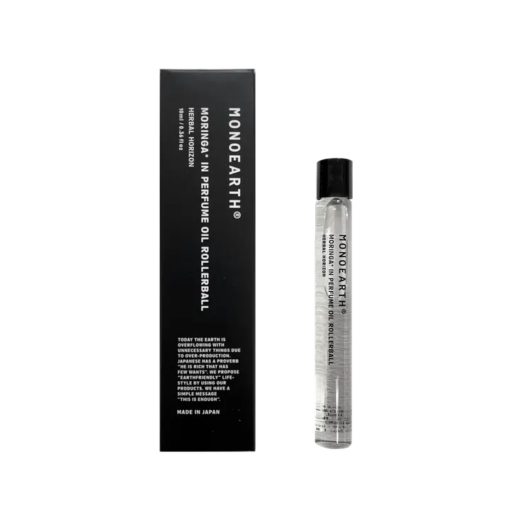 ■ 製品説明 -DESCRIPTION- ブラジル産有機さとうきびから生成されたスクワランをベースに、豊富な栄養素を含有する「奇跡の木」モリンガの実より抽出されたピュアオイルを抗菌・エモリエント効果・テクスチャー改善・被膜形成用途で配合しました。天然成分のみで処方されたスキンケア仕様のパフュームオイルです。 爪やあまかわのケア、またエタノールフリーですので、寝香水にもお薦めです。 持ち運びに便利なバッグインサイズです。 ■ ご使用法 -DIRECTION- ロール部分を首や手首、耳の後ろ、爪、あまかわ等にあて適量を塗布してください。 オイルの出が悪い場合は、ローラー部分を反時計まわりにひねり緩めてください。 工場出荷時は、持ち運びの際に浸透圧の高いオイルが染み出さないよう、きつめの設定になっています。 キャップを閉めるとまたきつめの設定に戻ります。 STORY 【スクワラン】 スクワランオイルの原料となるスクアレンは深海鮫の肝油から発見されました。ヒトの皮脂の13%を構成する成分であり一般に25歳くらいから分泌量が減り始めると言われています。動物保護の観点から鮫由来のスクワラン生成には問題提起がされており、サトウキビやオリーブなど植物からの生成が研究促進されています。 【モリンガ】 モリンガにはビタミン・アミノ酸など生物に必要な90種類以上の栄養素とお肌に有効な数多くの脂肪酸が満遍なく含まれています。地球上の可食植物でもっとも優秀と言われているモリンガは「奇跡の木」と呼ばれ、FAO(国連食糧農業機関)がアジア・アフリカなどの国々に植栽を促しています。 【オリエンタルホワイトティー香調説明】 茶葉の力だけでゆっくり発酵した白茶をイメージした香りです。柑橘の爽やかさと花のような甘さ、そして森を通り抜けてきた風のような木と緑の蒸れたような残香が特徴です。 【フローラルロックローズ香調説明】 トップにシトラスやグリーンノートの爽やかさを持たせたロージーフローラルの香り。残香にロックローズ特有のムスク香とウッドノートで深みを持たせた、甘さ控えめのローズの香りです。 【ハーバルホライズン香調説明】 都心のビルの屋上庭園で一休み。遮るもののない空、地平線に並ぶビル群。屋上に吹く風に乗って運ばれる数種類のハーブの香りは、ナチュラルでありながら洗練されて都会的。都会のエアポケット、そんなルーフトップハーブガーデンをイメージした香りです。 MONOEARTH/モノアース