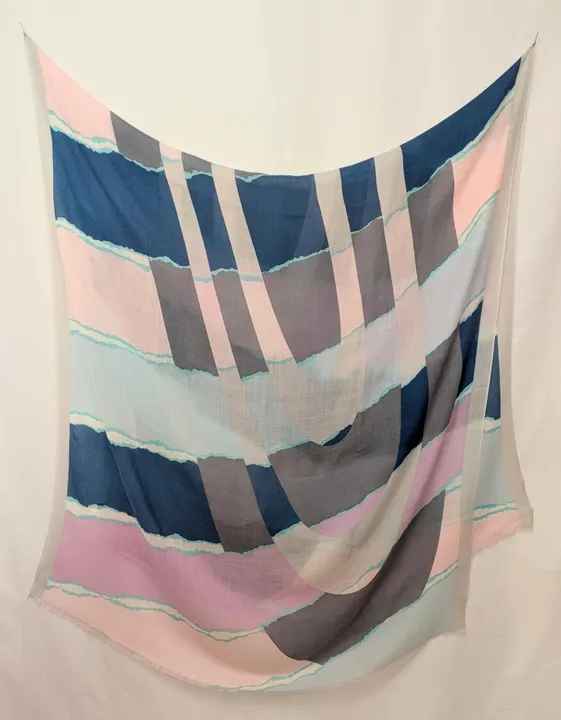 肌ざわりの良い薄手ウールに波紋をイメージした柄を捺染しています。 幅広でアートを羽織るよ感覚でお使いいただけます。 軽く、温かく、真冬から春先までご使用いただけます。