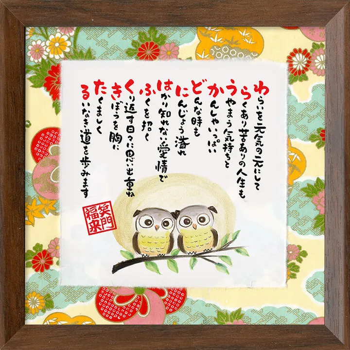 笑う門には福来るmini ふくろう ポエム 詩 友禅和紙 お祝い ギフト 贈り物 プレゼント【詩絵(うたえ)】 友禅和紙 華