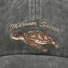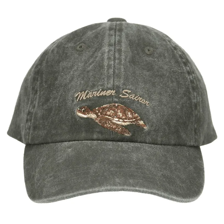 夏らしく海の生き物を刺繍したキャップ。風合い変化の楽しめるピグメント加工素材。1,2番色は単色、3,4番色はトップとツバを配色にしています。