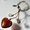 ミニマル ハートガラス チェーンバッグチャーム キャメル