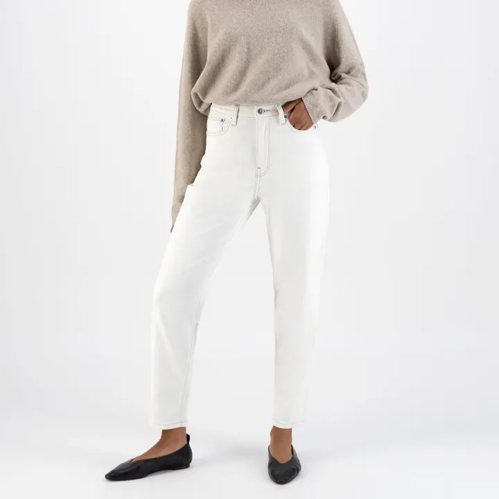 The Mams のストレッチテーパードはクラシックなマムフィットで、わずかに伸縮性のある足首までのジーンズです。このスタイルでは、生地そのものの色が使用され、最終段階でソフトウォッシュが使用されることにより滑らかな手触りが得られます。生地は軽いですが透け感はありません。ライトベージュの糸とサンドでプリントされたラベルがカジュアルな印象を与えます。冬は肌触りの良いセーター、夏はタンクトップと合わせるのにぴったりです。 《最小発注数について》 在庫あり商品の場合は1本~可。海外発注の場合は同ブランド商品10本~可。 こちらの商品は一部要海外発注となります。