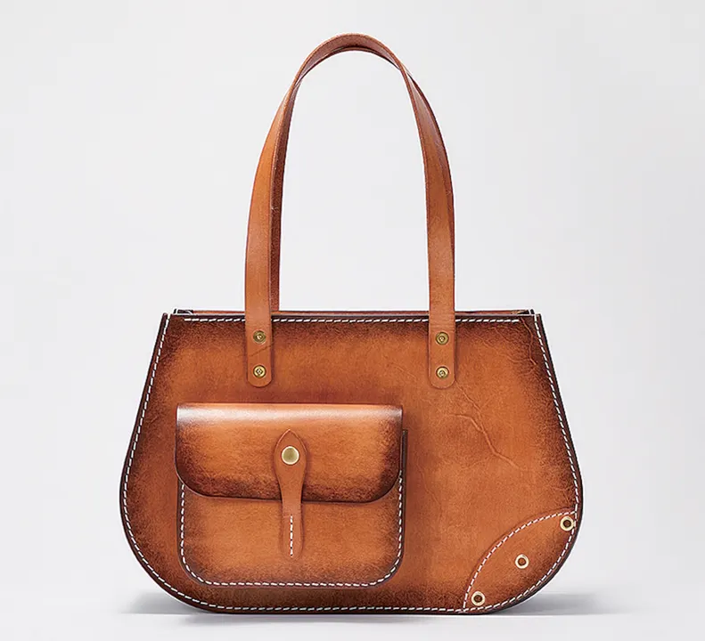 染色、縫製まですべて手作り。熟練の職人が染色し手彫りで装飾を施しながら1点1点作るバッグの美しさをご覧ください。