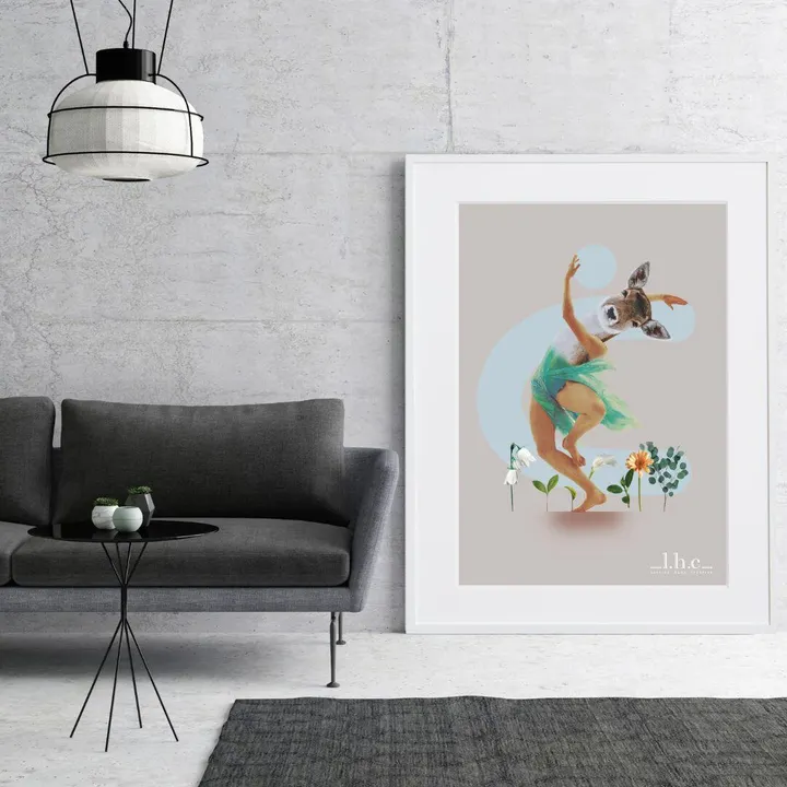 アーティスト -PROFILE- Yuria Oku(ユリア オク) Leirion Hand Creation 北海道出身 アートディレクター/デザイナー 広告やグラフィックデザインの仕事をしながら、自身ではコラージュアートや写真撮影、イラストなど幅広く活動。 写真とイラストのコラージュや合成など現実にはない、不思議で奇妙な作品を得意とする。 ファッション広告を想定とした作品も制作している。 【作品について】 作品名:Deer dance 手法:デジタル、コラージュ ペーパー:高品質半光沢紙 マットカラー:白 マット*:DXホワイト芯 100%バージンパルプ/PH7・中性紙(2mm厚) ※全てのアートにマットがつきます フレームカラー:黒、白、無垢(3種類から選択) ※マット付のため通常とはフレームサイズが異なる規格となります。 【マット*とは?】 アートポスターの周りに挟んだ厚紙の事。 マットを使わない時に比べ余白により広がりが生まれ、作品の新たな一面を引き出せ作品の見栄えがグッと良くなります。また、額縁のガラス面と作品が直接触れたままにしておくと、くっついて作品を傷つけることがあります。マットを使用することでガラスと作品の間に空間ができ、作品を保護することができます。ブランドコンセプトにより全てのアートにマットがつきます。 ー ファッションのようにアートを ー 私達が掲げるコンセプトです! 毎日着替えるファッションの様に、アートも気軽に飾り変えて欲しい... 一旦飾り終えたアートにも光を当ててほしい... ポスター単体、またはリピートで中身だけのポスターを購入された方に"専用のハンガー"をセットでお届け。 「今までに無い!新しいアートの飾り方を提案」 飾る事がなくなった前のアートをハンガーにかけて洋服と一緒にかけてもらう。 その日の気分や、モチベーションですぐに取り換えられる様に。 もちろん、魅せる収納としても今までにないおすすめの飾り方です。