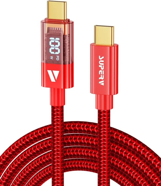 SUPERV Rt4 急速充電 USB C to C ケーブル [100W PD対応 2m] LEDディスプレイ内蔵 iPhone Android 各種対応 (サンプル) レッド