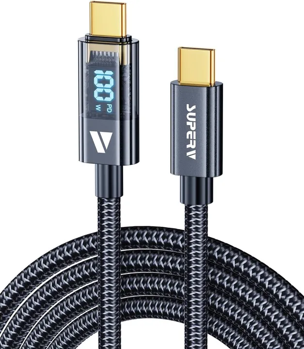 SUPERV Rt4 急速充電 USB C to C ケーブル [100W PD対応 2m] LEDディスプレイ内蔵 iPhone Android 各種対応 ブラック