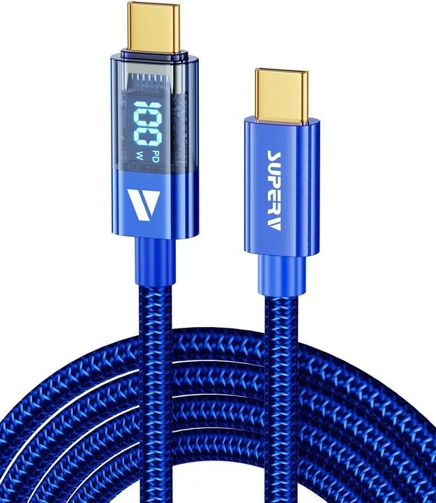 SUPERV Rt4 急速充電 USB C to C ケーブル [100W PD対応 2m] LEDディスプレイ内蔵 iPhone Android 各種対応 ブルー