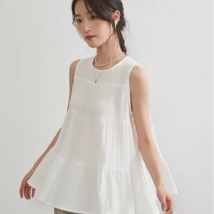 KNGT616・ティアードノースリーブフレアトップ FREE/WHITE