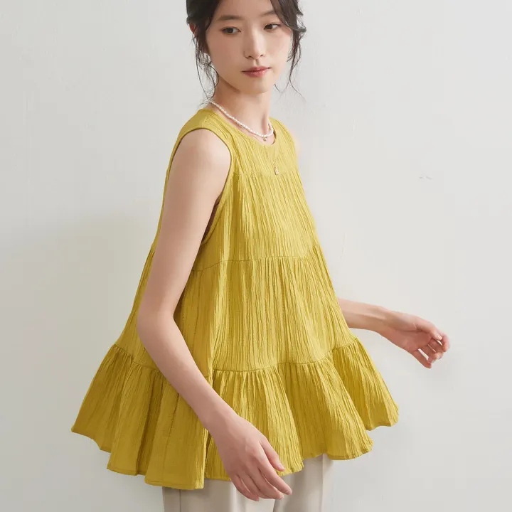 KNGT616・ティアードノースリーブフレアトップ FREE/ MUSTARD