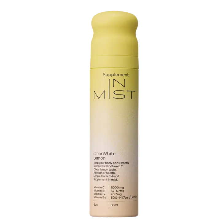この商品について 🍋サントリー発ベンチャーが開発。 🍋どこでも水無しワンプッシュでおいしく飲めるミスト型サプリメント。ワンプッシュ1mlで1日分のビタミンCとビタミンB群(B1、B6、B12)。シトラスレモンテイスト。 🍋美容・健康に不可欠なビタミンCを1秒チャージ。ミストだからこそ吸収されやすく、とても効率良くビタミンCを摂取できます。 🍋IN MISTは、栄養をミスト状にして飲む新形態のサプリメント。水なしで、いつでもどこでも飲めて、ジュースのような美味しさだから「毎日飲めて、サプリメント習慣が長続き」。 🍋たった1秒で1日分のビタミンC(100㎎)を美味しく補給。ビタミンCは数時間でカラダから流れ出してしまう成分。1度に大量に摂取するより、こまめに摂取する方が効率が良いことが科学的に証明されています。 🍋ClearWhite Lemonは、そのメカニズムに着目し、いつでもどこでもビタミンCをチャージできるよう開発されたミスト型サプリメント。手軽でおいしい美容ルーティーンを体感ください。 🍋内容量:約50回分(約25日分) ※1日2回目安 IN MISTは、美と健康への意識が高い20代〜30代の女性を中心に、幅広い層の方々にご支持いただいています。 お客様の声では、「吸収しやすいことと、水なしで飲めることが魅力的」「とても美味しく手軽にビタミンを摂れるので、継続しようと思う」など、継続しやすさと美味しさが評価されています。 さらに、管理栄養士からも「場所を選ばず手軽に飲めるので、理想的なサプリメント」との専門的な評価をいただいています。 【こんな方におすすめ】 ☑忙しくても手軽にケアしたい方 ☑錠剤やドリンクタイプのサプリが苦手 ☑食生活が不規則で、ビタミン不足を感じている ☑持ち歩ける美容アイテムを好む ☑気分転換できる香りやデザイン性を重視する ☑継続しやすく、楽しみながら美容を続けたい方 ☑トレンドや新しい美容習慣に敏感な方 ・お取り扱い先 現在、EC・楽天・Amazon・全国のハンズ51店舗、蔦屋家電二子玉川店、高知 蔦屋書店、有名美容クリニックのECショップにてお取り扱いいただいております。