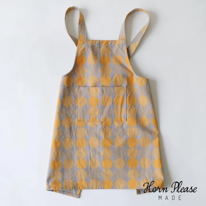 ほど良い厚さのキャンバスコットン生地のエプロン。 素朴な色合いのプリントは、色ごとの版を彫り、パネル状の版にして一つ一つ職人が刷っていくスクリーンプリントの技法です。 多少激しく動いてもエプロン自体がズレにくいたすき掛けタイプ。 お子様おすすめ。 *HANDSCREENPRINT *長さ調節可能 【たすき掛け】【キッチン】【ファブリック】【キッズ】【親子コーデ】【お揃い】【ブロックプリント】【D】