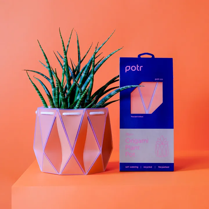 Origamiのイノベーションを利用したサステナブルなプラントポットブランド「POTR(ポッター)」。手間のかからない植物の手入れを可能にします。