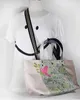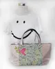 TP5902 横長3ブロックレトロフラワー柄2WAYトートバッグ BEIGE