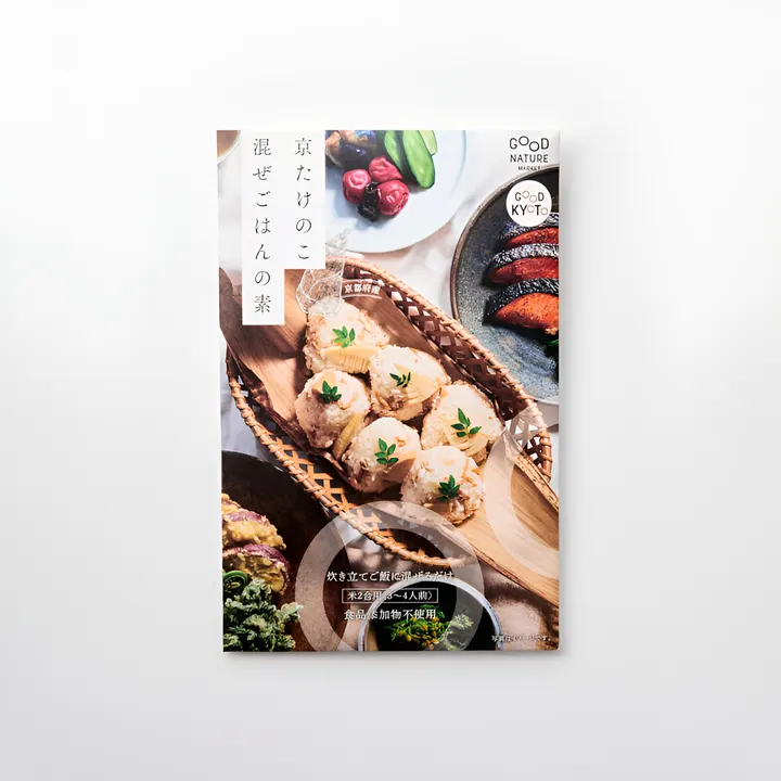 香り高い京都のたけのこに、国産の自然素材が入った旨味豊かな「旨味京だし」で仕上げた混ぜごはんの素。素材の味を引き出すために、食品添加物不使用、手作業にこだわりました。炊きたてごはんに混ぜるだけで手軽に食べられるレトルトタイプです。 〇上品なお出汁で、京たけのこの旨味が引き立つ混ぜごはんの素。 丁寧な土づくりをして育てられたたけのこは、歯応えがありながらも、柔らかい食感が特徴で、しっかりとした食べ応えもあります。たけのこの美味しさを引き出すために、国産の海や山の自然素材と、抹茶の原料である京都府産の高級碾茶(てんちゃ)をブレンドして作った上品な味わいのお出汁で仕上げました。材料を手作業で調理することで素材本来の香り、旨味を引き出しています。炊きたてごはんにサッと混ぜるだけの簡単調理で、風味ゆたかな混ぜごはんが手軽に楽しめます。 ※食品添加物不使用 〇手作りだから、体にも優しく美味しさたっぷり。 素材にこだわり、調理、パウチ詰めなどの工程は、人の手で丁寧に行いました。具材で使う野菜などの仕入れ先は、国内産の品質の良いものにこだわり、調理に関しては、機械を使わず時間をかけて炒める・煮込むなどを行っています。 気温や素材の微妙な変化にも、手作業で行うことで均一な品質を保て、調理時間なども微妙に調整しています。時間をかけて作った愛情たっぷりの商品をお届けします。 〇京都のGOODな食材、食の知恵、作り手たち。「GOOD KYOTO」 京都で大切に育まれた、安心・安全な自然食材。古来より京都に根付く、自然を敬う豊かな食の知恵。昔ながらの製法を大切にする、素晴らしいつくり手。美味しいだけじゃない、心にも体にもGOODな京都の食を、リスペクトを込めてお届けします。 〇選べる楽しさ、豊富なバリエーション。 混ぜるだけで簡単に手作りの美味しさが楽しめる「混ぜごはんの素」シリーズは5種類をご用意しています。素材や手作りの製法にこだわり、ギフトにはもちろん、お子様からご年配の方まで、簡単にお召し上がり頂けるように試行錯誤し開発しました。気分やシチュエーション、季節に合わせてお楽しみ下さい。