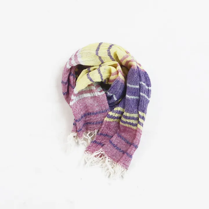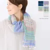 綿100%の糸をマルチボーダー柄の蚊帳生地に織り上げてつくったショールです。 優しい色合いのさまざまな色のボーダーはコーディネートを ぱっと明るく華やかにしてくれます。 暑い季節には汗をよく吸ってくれ、すぐに洗えるので便利です。 焼けやすい首の後ろの日よけにも。 持ち運びも邪魔にならず、軽いので大変おすすめです。 さらっとした肌触り、吸水性に優れ、軽く着心地のよい蚊帳生地シリーズです。 ≪ 蚊帳生地の特徴 ≫ ・“風は通すが、蚊は通さない”江戸時代から続く日本伝統の布。 ・目の粗い生地で非常に軽く、速乾性・通気性・吸水性に優れています。 ・洗うほどにふんわりと優しい肌触りに変化していきます。 ・敏感肌の方やお子様にも安心してお使いいただけます。 [サイズ/組成] 約138×51cm ※洗濯によって、多少伸縮します。一番初めに糊を落とす際は、フリンジが重ならないように、水やぬるま湯につけてください。 綿100% 蚊帳1重仕立て OPP入 日本製