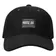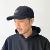 モノトーンの黒いタグでフロントをシャープに。柔らかな起毛ツイルで軽やかな被り心地。長めのツバで顔まわりをすっきり見せます。