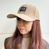 モノトーンの黒いタグでフロントをシャープに。柔らかな起毛ツイルで軽やかな被り心地。長めのツバで顔まわりをすっきり見せます。