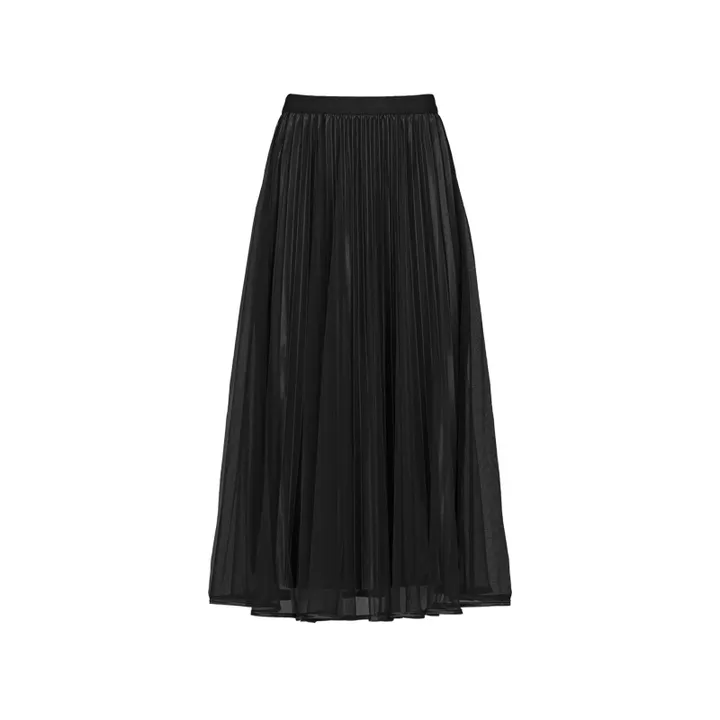 25年秋の新商品で、ストライプショールクロップシャツセットとコーディネート商品。 最近のトレンドなプリーツを強調したロングスカート