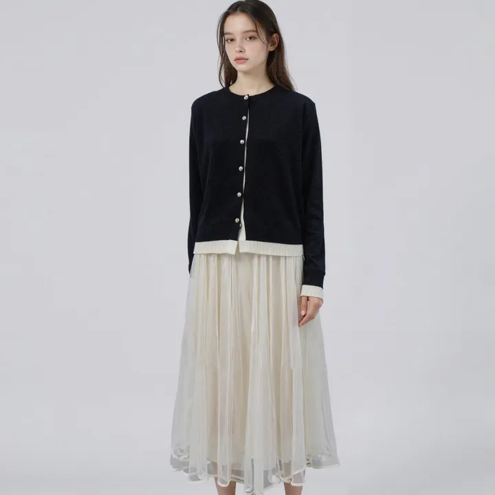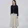 25年秋の新商品で、ストライプショールクロップシャツセットとコーディネート商品。 最近のトレンドなプリーツを強調したロングスカート